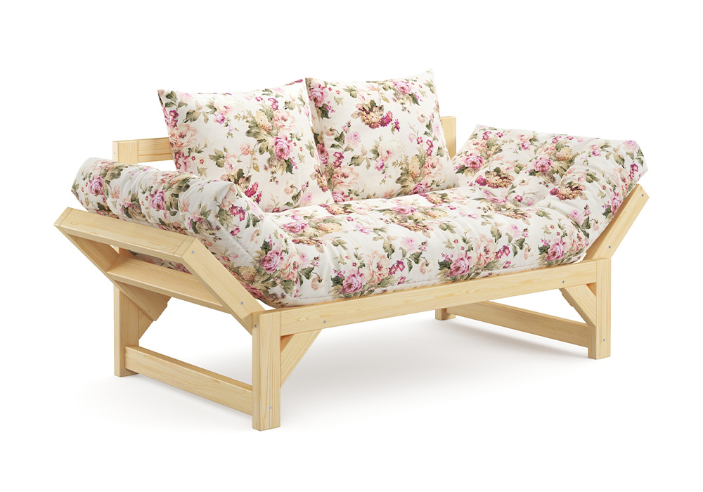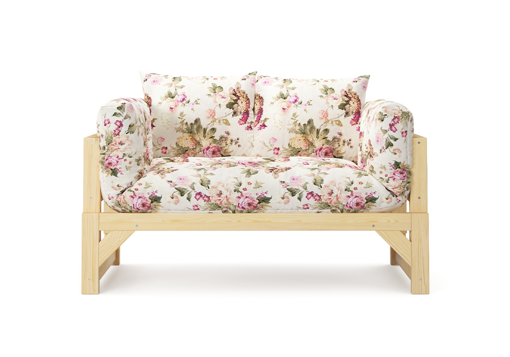 Максимальная нагрузка — 220кг. Ширина деревянной спинки 130 см. Приспинные подушки, представленные на фото, входят в комплект. Декоративные приобретаются отдельно. Диван продается без лакокрасочного покрытия, под самостоятельную покраску. Высота сиденья без матраса - 31 см, с матрасом 46 см.