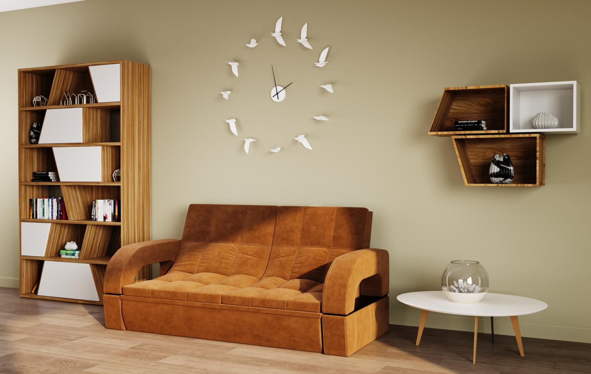 Особенности дивана: Каркас: ЛДСП, фанера, брус. Эргономичная мебель, позволяющая создать стильный интерьер. Обит качественным и плотным текстилем. Опорные элементы каркаса помогают равномерно распределять вес, благодаря чему напольное покрытие не продавливается. Механизм трансформации позволяет быстро и без особых напряжений превратить диван в удобное спальное место.