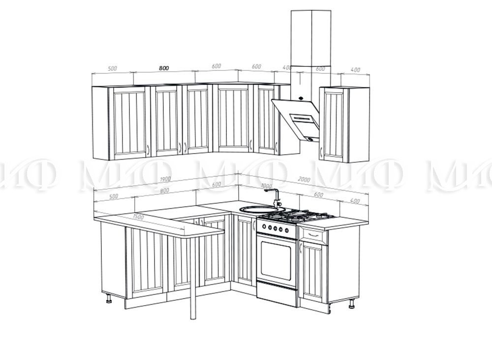 —Кухонный Гарнитур Настенька Угловая 1900 x 2000 мм МДФ/Разные Цвета
