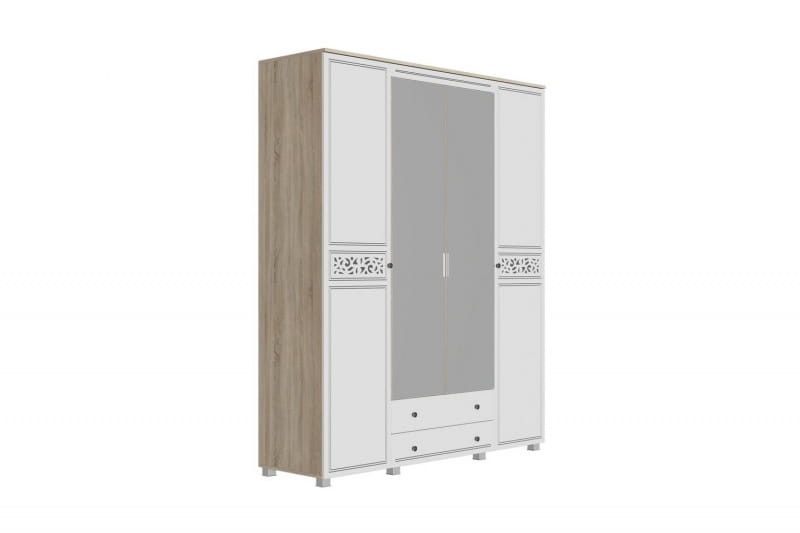 Особенности шкафа: Материал корпуса - ЛДСП 16 мм., материал фасада - МДФ 16 мм. Ручки - кнопка К-23 Серый антик-серый. В комплект входят две металлические штанги. Конструкции корпуса собираются с помощью эксцентриковых стяжек и евровинтов. Крепление зеркал к основе – щиту ЛДСП, створкам производится покупателем с помощью клея. Два выдвижных ящика расположенные под секцией со штангой. Максимальная нагрузка на шариковые направляющие при равномерно распределённой статичной нагрузке, до 15 кг.
